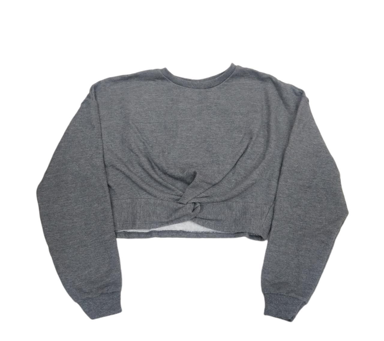 O blusão em Moletom mais básico ganha um toque bem feminino com a torção na barra que, além de deixar qualquer look mais moderninho, supervaloriza a cintura.