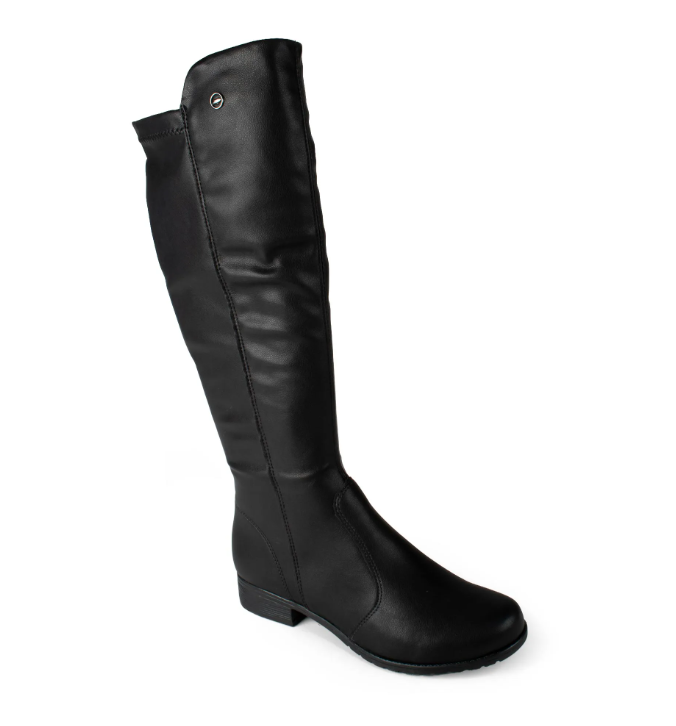 a peça chave para um visual sofisticado e confortável em qualquer ocasião! Confeccionada com materiais de alta qualidade, combinando a durabilidade do sintético com a maleabilidade do tecido na parte de trás do cano, esta bota se ajusta perfeitamente às suas pernas, proporcionando um caimento impecável e conforto inigualável. O design minimalista em preto oferece versatilidade para compor looks incríveis, desde o dia a dia agitado até os momentos de lazer com muito estilo.