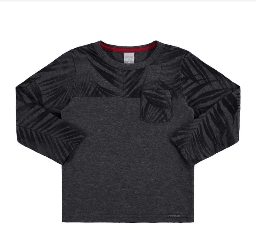 Camiseta manga longa com estampas de folhas minimalistas. Ideal para usar com jeans e dias mais amenos da estação.