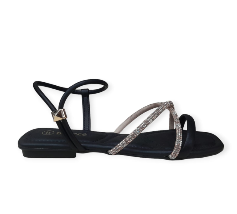 Sandália Feminina Rasteira Tira Strass Bebece Preto, uma peça que combina elegância e conforto para mulheres modernas. Ideal para quem busca sofisticação sem abrir mão do bem-estar.