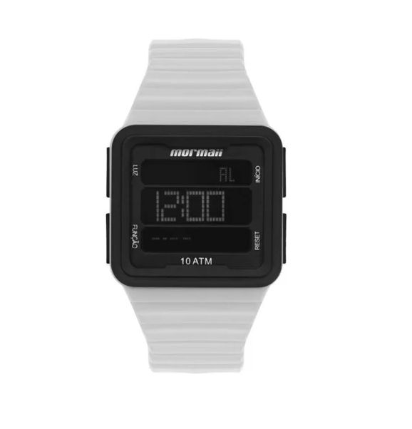 Possui mecanismo Digital, a pulseira de silicone na cor preta e possui Fecho Fivela. A Caixa (peça onde fica o mostrador) é fabricada em polímero na cor preta, mede 3,8cm, sem considerar os botões ( onde se ajusta a hora), o tamanho da caixa é considerado tamanho medio para relógios do gênero. O Relógio Masculino Mormaii MO0719AA/8P tem nível de resistência à água de 10 ATM.