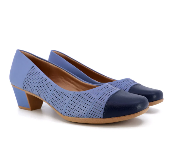Scarpin salto bloco em couro retro detalhe em laser. O modelo possui tecnologia +Bem-Estar, com espumas posicionadas em pontos estratégicos na palmilha garantindo conforto e suavidade na pisada.