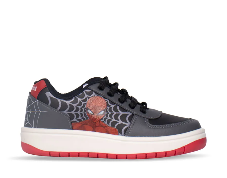 Seu visual marcante traz a ilustração do Homem Aranha na lateral e o desenho de uma teia na parte traseira, detalhes que despertam a imaginação. A paleta de cores em preto, vermelho, cinza e branco confere um toque moderno ao estilo infantil. Já o solado em borracha proporciona aderência e segurança a cada passo.